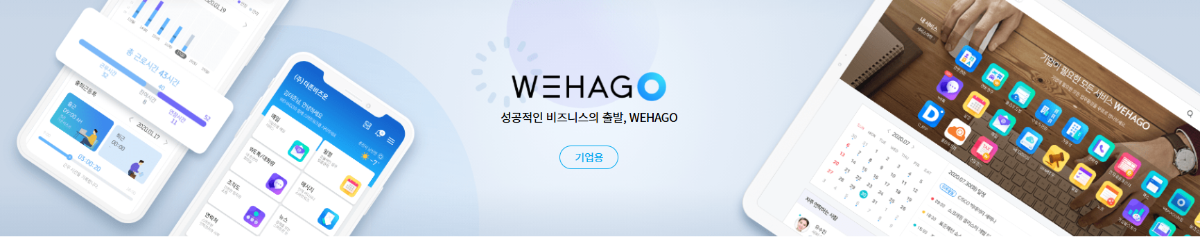 기업의 다양한 업무환경에 필요한 온라인 비즈니스 플랫폼 WEHAGO 웹/모바일로 언제 어디서나 편리한 업무를 경험하세요.